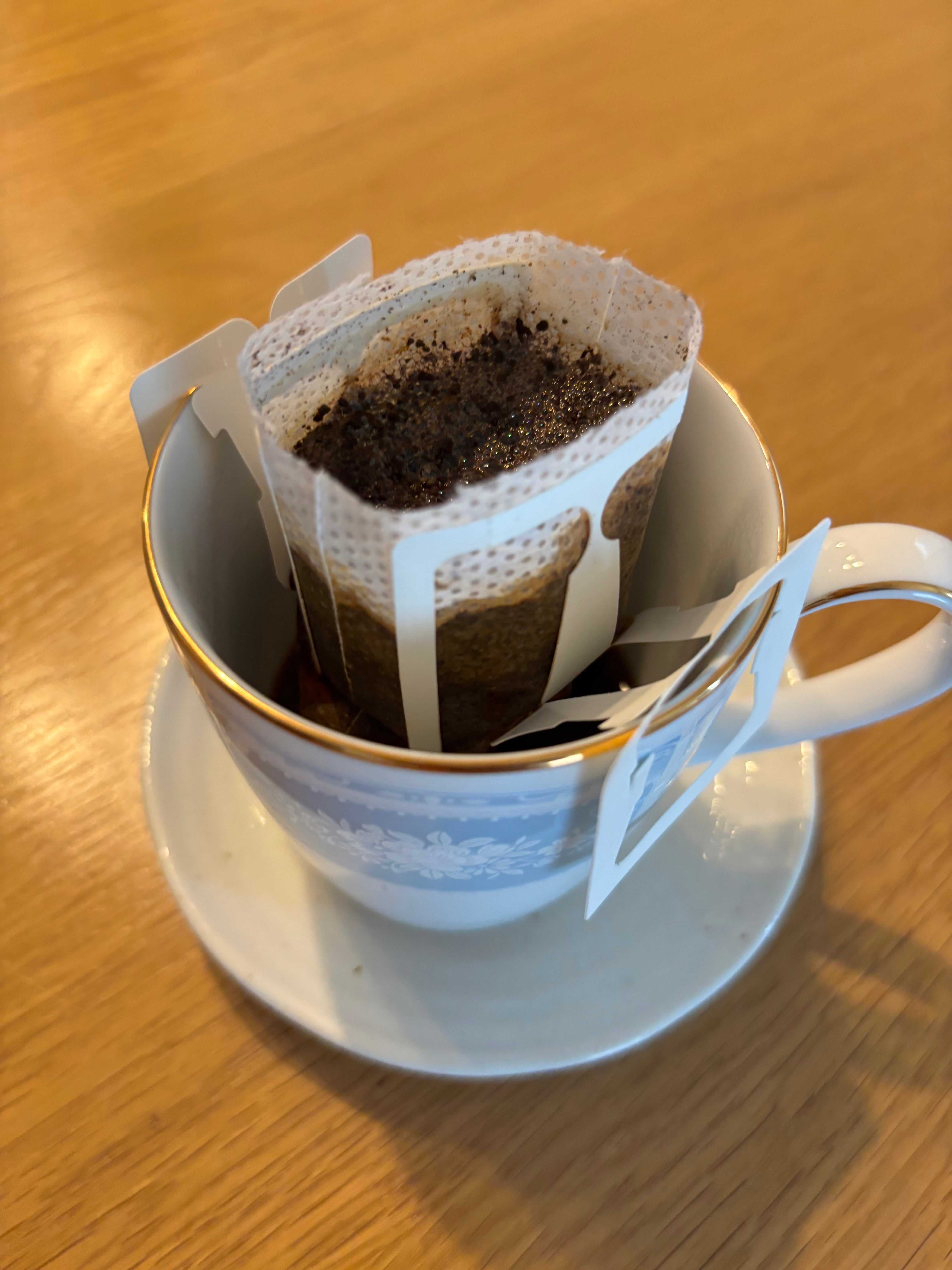 3.蒸らしが終わったら、少量のお湯を数回に分けて計180mlまで、中心から円を描くようにゆっくりと注ぎます。注ぎ終わったら、コーヒーが落ち切るのを待ち、落ち切ったらドリップバッグを取り外してください。